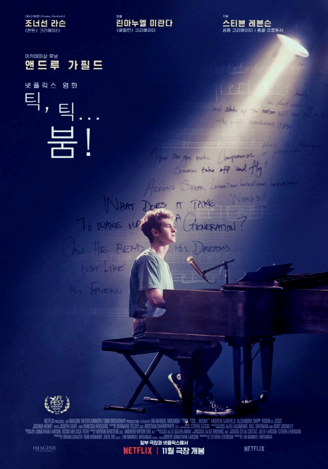 넷플릭스 영화 "틱틱붐"은 Lin-Manuel Miranda가 감독하고 Jonathan Larson의 반자전적 뮤지컬을 기반으로 한 이 뮤지컬 드라마는 예술가로서 성장하는 주인공의 과정을 그린 영화입니다.