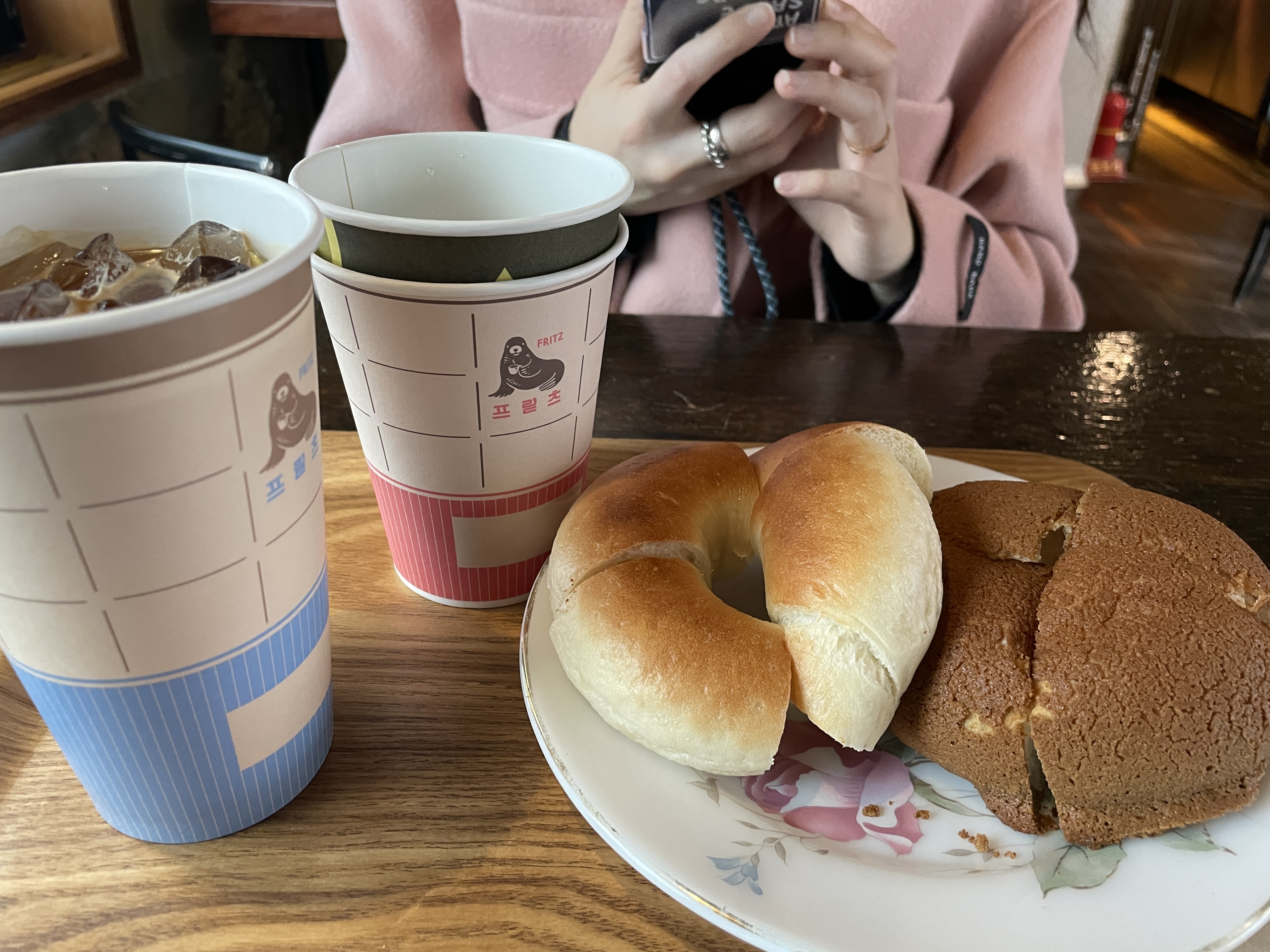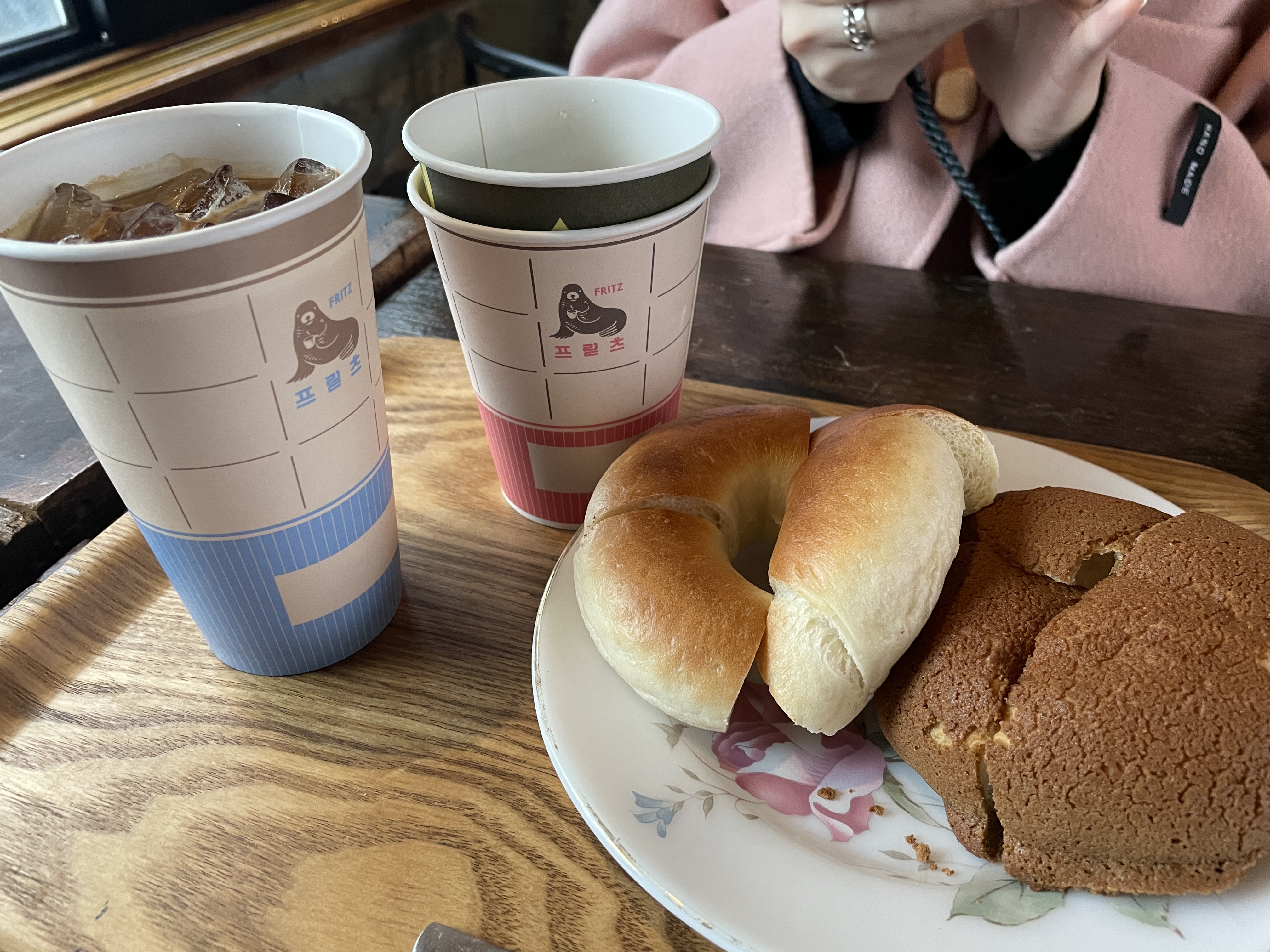 보통의 플레인 베이글은 겉에가 딱딱한 식감이 좀 있는데 프릳츠 커피의 베이글은 더 빵스러웠다.