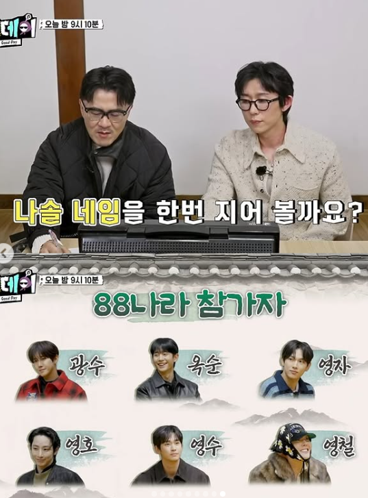'굿데이' 2화에서는 1988년생 스타들, 일명 88즈가 모여 본격적인 활동을 시작했습니다. 첫 만남에서는 약간의 어색함이 존재했지만, 각자의 캐릭터를 살린 소개 타임과 별명 부여 이벤트를 통해 금세 친밀해졌습니다.