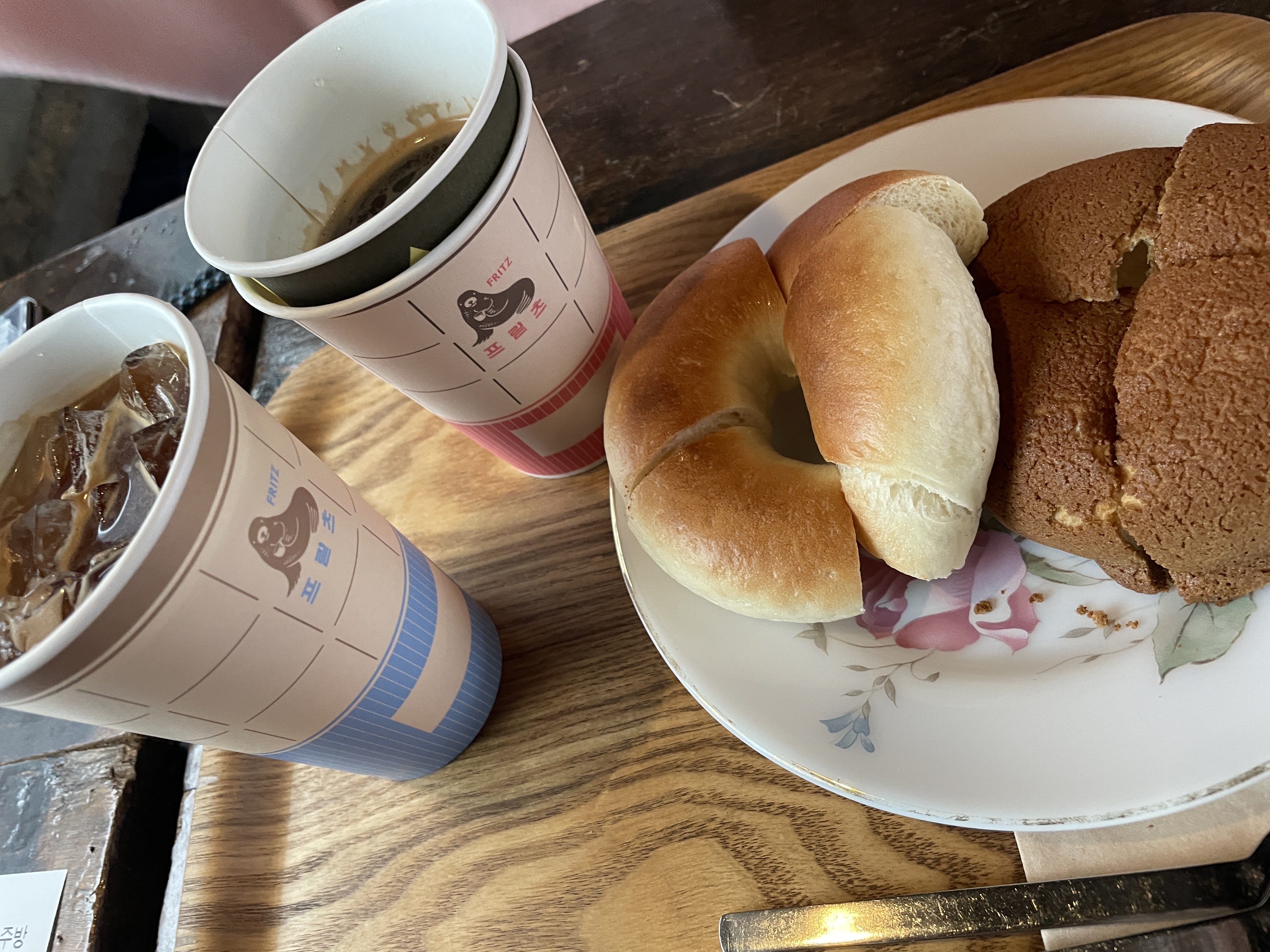 보통의 플레인 베이글은 겉에가 딱딱한 식감이 좀 있는데 프릳츠 커피의 베이글은 더 빵스러웠다.